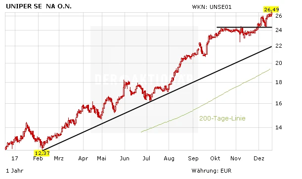 Der Einstieg Singers verleiht der Uniper-Aktie Fantasie. Eine klassische Squeeze-Out-Situation wird sich zwar nicht ergeben. Neben der Übernahmefantasie sprechen aber auch die steigenden Dividenden und das attraktive Chartbild für den Versorger. Anleger können nach dem Sprung auf das neue Rekordhoch an Bord bleiben. Der enge Stopp bei 23,00 Euro sollte aber beachtet werden.