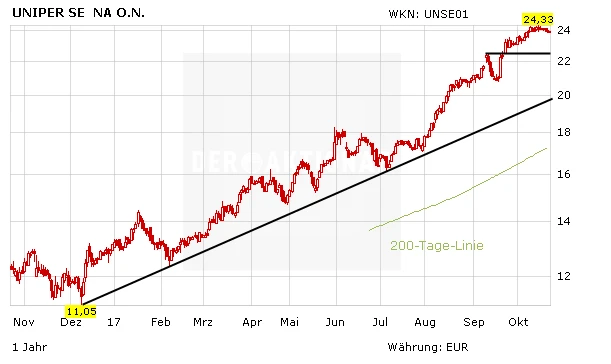 Mit dem Verkauf von Uniper setzt E.on den eingeschlagenen Weg konsequent fort. Der Versorger poliert seine Bilanz weiter auf und ist gut für die Energiewelt gerüstet. DER AKTIONÄR bleibt deshalb optimistisch und setzt im Hebel-Depot weiter auf steigende Kurse. Bei Uniper dagegen könnte sich vorerst eine Seitwärtsbewegung entwickeln. Fortum wiederum bleibt ein interessantes Investment für konservative Anleger. Die attraktive Dividendenrendite von 6,1 Prozent und das tolle Chartbild sprechen für die Finnen.