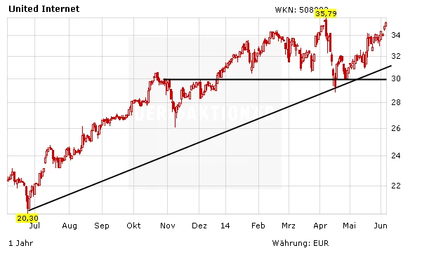 Schwung bekommen die Bullen vor allem von der US-Bank JPMorgan. Die Analysten haben das Kursziel für United Internet von 42,00 auf 45,00 Euro erhöht. Das Votum lautet nach wie vor „Overweight“. Bereits zuletzt hatte die Landesbank Baden-Württemberg das Kursziel von 35,50 auf 36,00 Euro erhöht. Für die LBBW ist die United-Internet-Aktie allerdings nur eine Halteempfehlung.