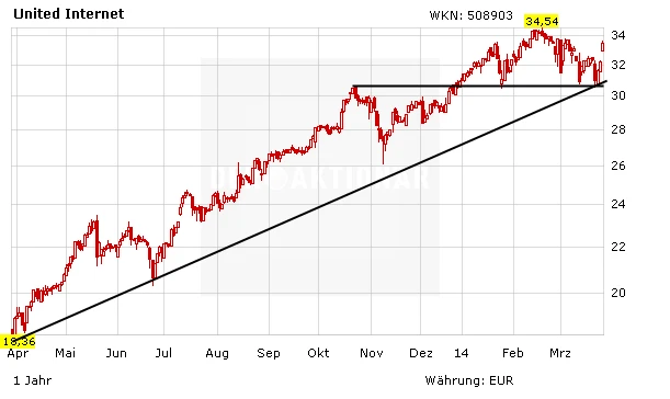 Die schwächste Einschätzung für die Aktie des Internetdienstleisters kommt vom Analysehaus Warburg Research. Analyst Jochen Reichert hat die Einstufung auf „Hold" mit einem Kursziel von 31 Euro belassen. Die Ergebnisse des vierten Quartals hätten die Erwartungen erfüllt. Der Ausblick für das EBITDA 2014 sei jedoch stark.