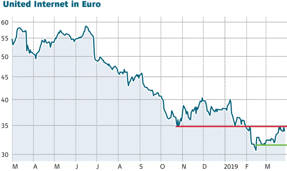 Die Aktie von United Internet ist im vergangenen Jahr deutlich unter Druck geraten. Inzwischen ist knapp über der 30-Euro-Marke ein Boden gefunden worden. Doch nach wie vor ist unklar, wie die 5G-Auktionen ausgehen und wie es bei United Internet dann weitergeht. Langfristig orientierte Anleger sollten deshalb noch abwarten. Trader können beim Sprung über die 35-Euro-Marke eine Position wagen und auf eine dynamische Erholung setzen.