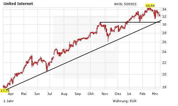 Am Donnerstagmorgen zeigt sich die Aktie von United Internet wenig bewegt, stärkere Kurssprünge werden erst wieder mit Veröffentlichung der Jahreszahlen am 27. März erwartet. Der Aufwärtstrend ist derweil weiterhin intakt. Auf dem derzeitigen Niveau ist auch weiteres Potenzial vorhanden.