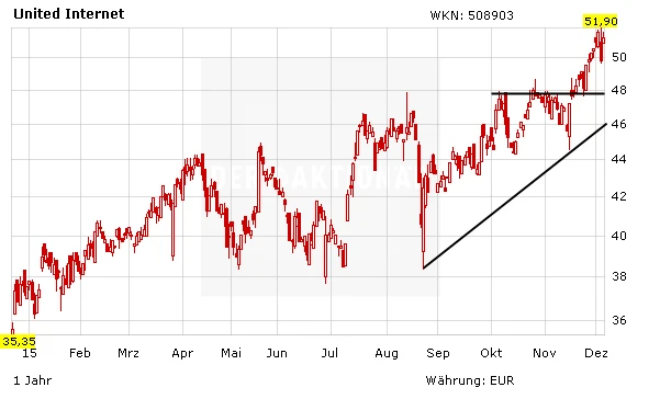 Die tolle Entwicklung bei United Internet kommt nicht von ungefähr. So steht mit Konzernchef Ralph Dommermuth ein starker Vorstand an der Spitze. Weitere erfolgreiche Übernahmen wie in der Vergangenheit sind möglich, zudem bietet der mögliche Börsengang der Applications-Sparte weiteres Potenzial. Die Geschäfte laufen ohnehin gut. Anleger bleiben entsprechend an Bord. Auch Neueinsteiger können bei Rücksetzern einsteigen.