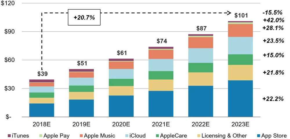 Umsatzpognosen für Apples Servicegeschäft in Milliarden Dollar