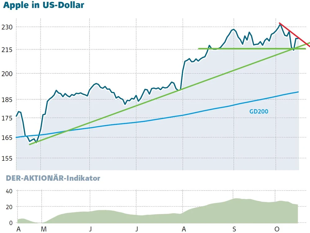 Für nennenswerte Kursrelavanz ist die Übernahme-Meldung nicht geeignet. Sie zeigt aber, dass Apple seine Finanzmacht nutzt, um Wettbewerber in Schach zu halten beziehungsweise bei Defiziten mit Akquisitionen nachzulegen. Die Aktie ist unabhängig davon wieder auf Erholungskurs gewechselt und könnte sogar bald die jüngste Konsolidierung beenden. Dazu muss der Wert über 223 Dollar steigen. In diesem Fall dürfte dann das Allzeithoch bei 233 Dollar als nächstes ins Visier genommen werden. Mit der Goldman-Einschätzung dürfte der Ausbruch allerdings erst einmal vertagt werden.