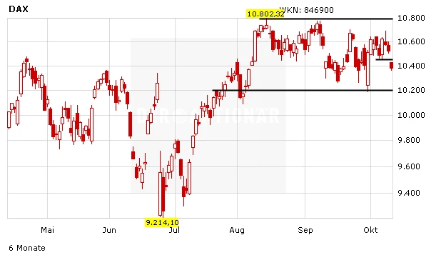 Aus technischer Sicht droht nach Unterschreiten der Unterstützung bei 10.450 Punkten ein Rücksetzer bis 10.300. Sollte auch hier die Konsolidierung kein Ende finden, wird wohl die untere Begrenzung der wochenlangen Seitwärtsrange bei 10.200 Zählern getestet.