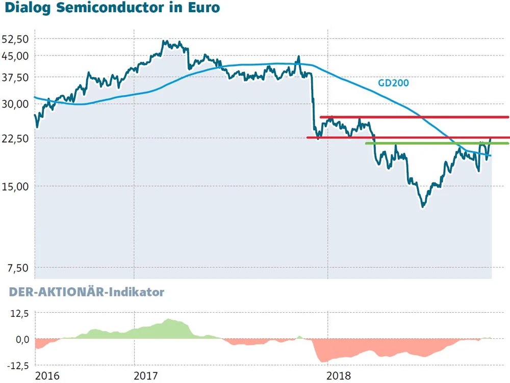 Die guten Quartalsergebnisse bescheren der Aktie deutliche Zugewinne. Bei 22 Euro wurde auch ein wichtiger Widerstand geknackt, was der Aktie weiteres Potenzial einbrachte und auch heute für Kursgewinne sorgt. Zudem findet heute in London ein Capital Markets Day (CMD) statt. Man darf eigentlich davon ausgehen, dass Dialog dafür auch weitere gute Nachrichten im Gepäck hat. DER AKTIONÄR hielt die Aktie bis dato vor dem Hintergrund des starken Kursanstiegs durch den Apple-Deal für zu riskant, muss aber angesichts der guten Nachrichten seine skeptische Einschätzung womöglich ändern. Dazu wird allerdings der CMD abgewartet.