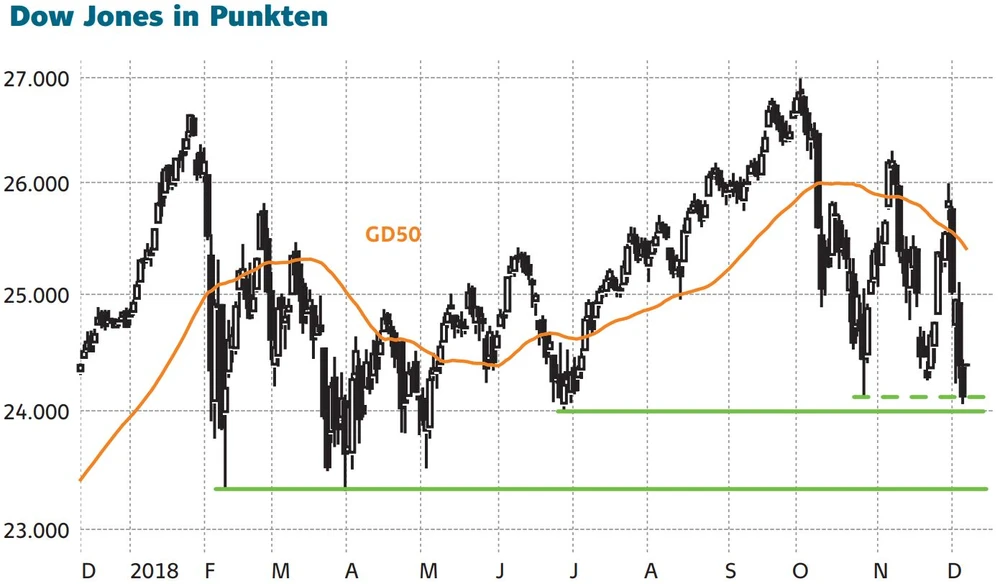 Eine halbe Stunde vor Handelsschluss an der Wall Street lässt sich festhalten, dass der Worst Case vorerst nicht eintritt. Der Dow Jones notiert nur noch 0,1 Prozent im Minus, nachdem er schon 500 Zähler tiefer und damit unter der wichtigen 24.000-Punkte-Marke stand. Sollte diese Linie nachhaltig unterschritten werden, droht eine Beschleunigung der Abwärtsbewegung. Dies dürfte auch der DAX zu spüren bekommen.