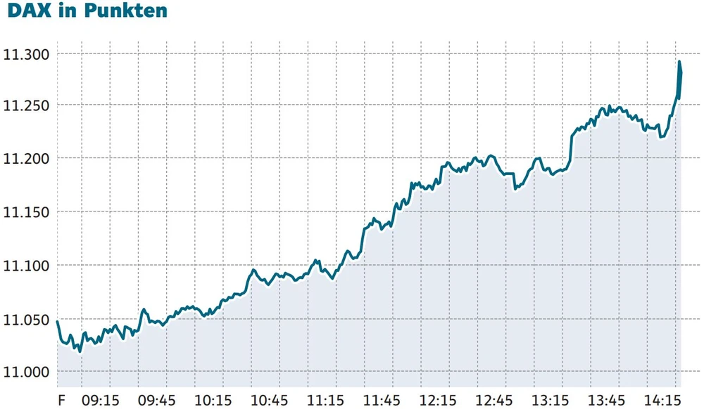 Der DAX hat nach dieser Nachricht in den Rallye-Modus geschaltet. Zeitweise notiert er oberhalb von 11.300 Punkten. Die technische Situation hat sich entsprechend deutlich verbessert. Sollte der DAX das Niveau halten können, dürfte er kommende Woche das Jahreshoch bei 11.371 ansteuern. Gelingt der Sprung über diese Hürde, sind 11.566 im Bereich des Möglichen.