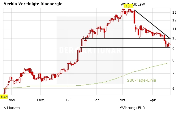 Das Papier von Verbio zählte zu Jahresbeginn zu den absoluten Top-Performern im Nebenwertebereich. Binnen sechs Monaten konnte die Aktie von 4,50 Euro auf ein neues Mehrjahreshoch bei 13,48 Euro klettern. Doch große Insiderverkäufe sorgten im Anschluss für einen massiven Abverkauf. Laut einer Analyse von Elliott-Waves.com droht ein weiterer Kursrutsch.