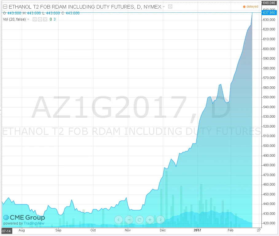 Gerade bei CropEnergies hängt die Entwicklung des Geschäftes sehr stark von den Preisen für Ethanol ab. Seit der Trump-Wahl konnte der Preis um knapp 50 Prozent zulegen. Wie der Preis das Geschäft der Südzucker-Tochter belebt, zeigten die letzten beiden Prognoseerhöhungen. Entsprechend reagierte auch die CropEnergies-Aktie.