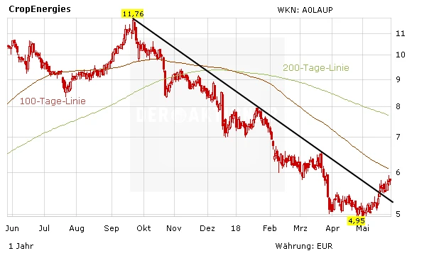 Auch die Papiere der Südzucker-Tochter CropEnergies reagierten zuletzt auf das Licht am Ende des Tunnels und haben den seit September bestehenden Abwärtstrend geknackt. DER AKTIONÄR hat beide Werte aktuell auf der Beobachtungsliste.