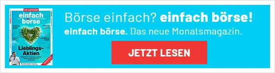 Mit dem Monatsmagazin einfach börse profitieren Sie unkompliziert und gezielt von den derzeitigen Megatrends und erhalten fundierte Insights zu aktuellen Themen an der Börse. Dieses Börsenwissen bildet die Grundlage für Ihr erfolgreiches Investment. Egal, ob Börsenneueinsteiger oder Fortgeschrittener – mit einfach börse finden Sie auf 124 Seiten alles, was Sie für eine erfolgreiche Geldanlage benötigen.