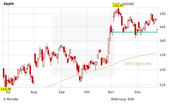 Die Zugewinne der vergangenen Wochen musste das Papier zwar abgegeben – Nachkäufern bietet das jedoch eine erneute Chance zu einem günstigeren Preis zuzugreifen. DER AKTIONÄR setzt das Kursziel der Apple-Aktie auf 170,00 Euro.