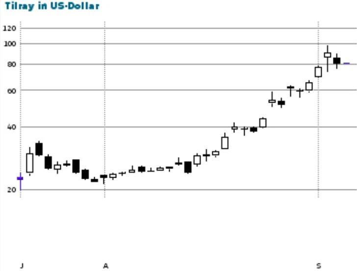 Eine unglaubliche Rallye verzeichnete zuletzt die Aktie von Tilray. Fast 500 Prozent gewann das Papier zwischenzeitlich seit seinem IPO im Juli dieses Jahres. In den letzten Tagen gab es nun die erwartete Korrektur. Allein am gestrigen Donnerstag verlor das Papier erneut mehr als zehn Prozent. Noch ist damit die Übertreibung nach oben sicher nicht abgebaut. Anleger sollten aber die Aktie auf ihre Watchlist setzen, um bei günstigen Kursen zugreifen zu können.
