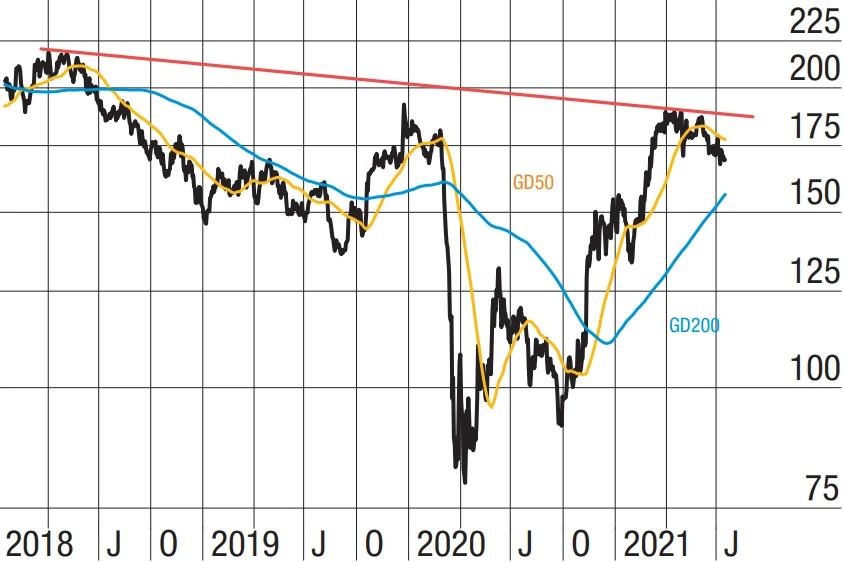 Charttechnisch bleibt der Abwärtstrend bei 185,25 Britischen Pence im Fokus. Knackt die Notierung diesen demnächst, würde das ein starkes Kaufsignal generieren. Zuvor stehen aber noch die 100-Tage-Linie bei 178,44 Pence und die 50-Tage-Linie um 177,50 Pence diesem Chartsignal im Weg. Eine gute Unterstützung sollte hingegen der GD200 bei 150,22 Pence darstellen.