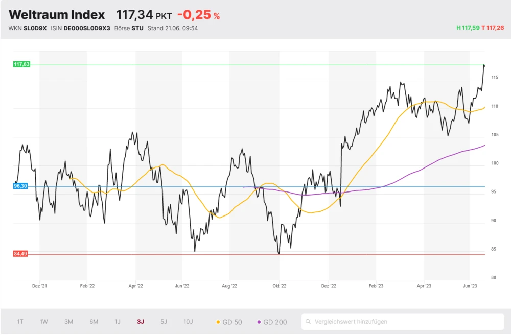 Virgin Galactic ist ein Mitglied von insgesamt neun Unternehmen des DER AKTIONÄR Weltraum-Index. Die höchste Indexgewichtung haben die Aktien von Flugzeugbauer Embraer gefolgt von Airbus und Boeing. Mit dem Indexzertifikat WKN DA0AB7 können Anleger nahezu eins zu eins am Luft- und Raumfahrtboom teilhaben.