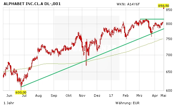 Der VR-Markt ist lukrativ. Laut Digi-Capital sollen hier rund 120 Milliarden Dollar im Jahr 2020 umgesetzt werden. Neben Künstlicher Intelligenz und dem Selbstfahrenden Auto ein weiterer Zukunftsmarkt den Google ins Auge fasst. Die zukünftigen Kurstreiber der Google-Aktie sind vielversprechend. DER AKTIONÄR sieht das Kursziel bei 1.000 Euro.