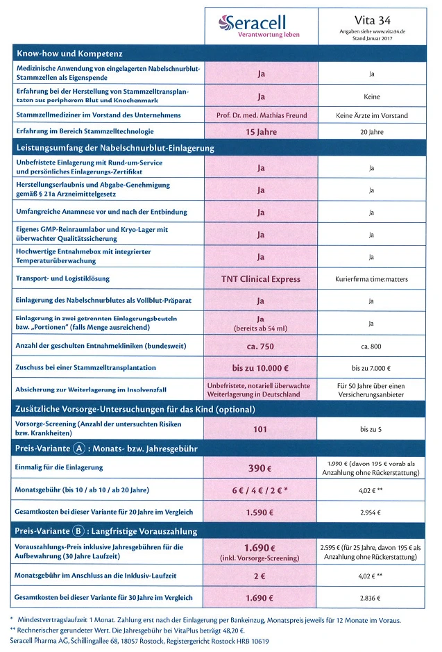 Der Preis macht den wesentlichen Unterschied: Sowohl auf Basis einer Monats- beziehungsweise Jahresgebühr als auch bei einer langfristigen Vorauszahlung sticht Seracell Pharma die Leipziger Vita 34 aus. Bei dem gleichen Produkt/Service wählen potentielle Kunden in der Regel die günstigere Variante.