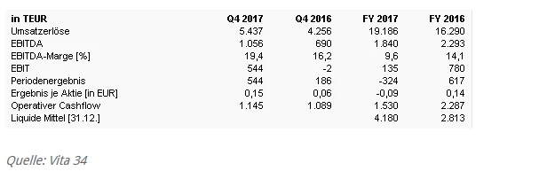 Nach den positiven Signalen der letzten Quartale des abgelaufenen Jahres sind wir optimistisch für 2018 und erwarten ein Umsatzwachstum von bis zu 20 Prozent auf 21 bis 23 Millionen Euro und einen überproportionalen Ergebniszuwachs auf 4,0 bis 4,6 Millionen Euro.