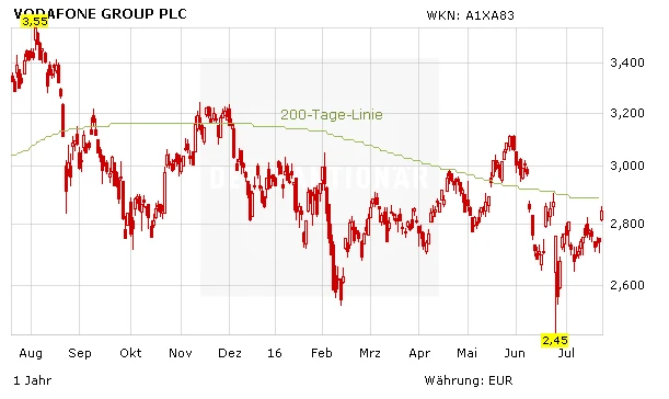Neben der Aktie der Deutschen Telekom sticht am heutigen Handelstag bislang vor allem ein Papier in der Telekombranche heraus: das von Vodafone. Zum ersten Mal bilanzierte der britische Konzern ein Quartalsergebnis in Euro, um damit die Bedeutung des Europageschäfts hervorzuheben. Diese Umstellung hatten die Briten bereits einige Zeit vor dem Brexit-Votum angekündigt.