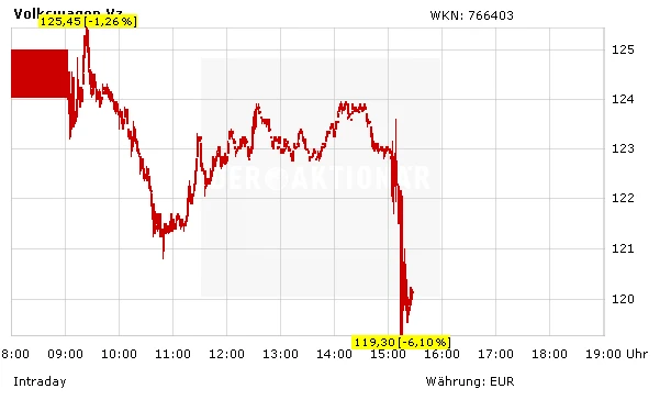 Die Erholung bei den Autoaktien ist vorbei. Nach der Veröffentlichung des Konzernabschlusses verlieren die Vorzüge von Volkswagen am Freitag weiter an Boden. Wie erwartet haben die milliardenschweren Rückstellungen für den Abgas-Skandal dem Autobauer einen neuen Rekordverlust beschert.