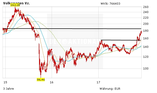 VW gibt sich selbstbewusst. Der Konzern wird in den nächsten Jahren 34 Milliarden Euro in neue Modelle und Batterien stecken. Viele Analysten hatten zuletzt ihre Kursziele nach oben geschraubt. Vor kurzem äußerte sich Barclays sehr optimistisch.