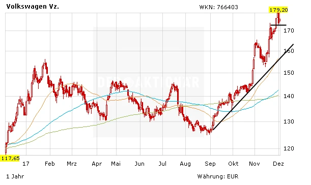 Die Rallye von Volkswagen seit den Zahlen für das dritte Quartal sei noch nicht vorbei. Dies sei "nur der Anfang" einer Verbesserung, erklären Die Experten von Barclays. Das Kursziel beträgt 195 Euro. Im Best Case seinen sogar 254 Euro möglich.