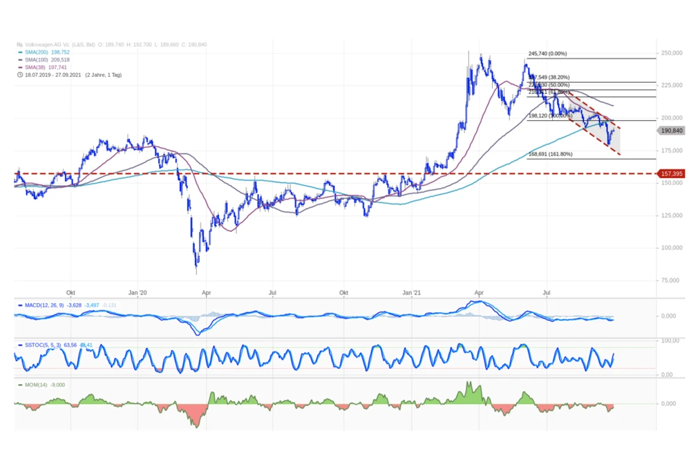 Dennoch: Sobald die Aktie die 200-Tage-Linie bei 198 Euro genommen wird, generiert das VW-Papier ein neues Kaufsignal. Der nächste Support liegt bei 177 Euro. Auf diesem Niveau würden sich wieder antizyklische Käufe anbieten.