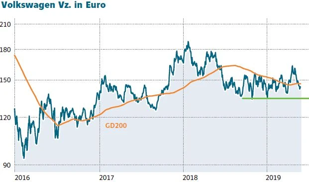 Die Aktie von VW ist zuletzt weiter unter Druck geraten und dabei auch unter die 200-Tage-Linie gerutscht. Die nächste starke Unterstützungszone liegt zwischen 138,10 Euro und 139,50 Euro. Ansonsten droht das Papier bis auf 133,50 Euro abzurutschen. Anleger können versuchen mit einem Abstauberlimit bei 133,90 Euro ein paar Stücke zu kaufen. Ein positives Signal hingegen würde die Rückeroberung der 200-Tage-Linie liefern.