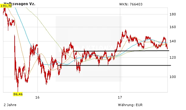 Wer einen langen Atem mitbringt und echter Fan von Autowerten ist, der der kann sich die VW-Aktie auf die Watchlist nehmen. Es bleibt dabei: Ein erstes Kauflimit kann bei 127,00 Euro platziert werden. Ein weiteres Abstauberlimit bei 115,00 Euro. Hier liegen aus der Vergangenheit mehrere starke Unterstützungen.