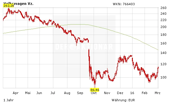 Mahnende Worte kommen derweil von der Baader Bank. Analyst Klaus Breitenbach hat seine Verkaufsempfehlung für die VW-Aktie bestätigt. Mit seinem Kursziel von 80 Euro signalisiert er ein Rückschlagspotenzial von über 30 Prozent. Zur Begründung verwies der Experte auf die schwachen Absatzzahlen in den USA. Auch in den kommenden Monaten erwartet Breitenbach dort rückläufige Verkaufszahlen.