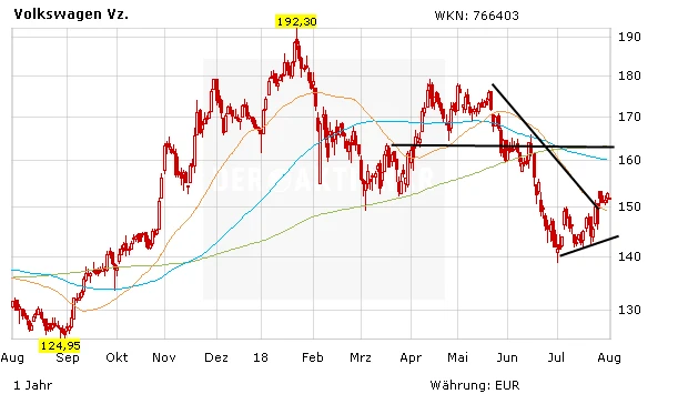 Nachdem US-Zölle auf Importautos mit hoher Wahrscheinlichkeit vom Tisch sind, hat sich die VW-Aktie wieder etwas erholt. Dennoch: neue positive Impulse konnte Vorstand Herbert Diess auch mit den Zahlen für das zweite Quartal nicht liefern. Diess warnte vor allem vor einem schwierigen zweiten Halbjahr.