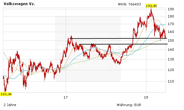 Es bleibt dabei: Die VW-Aktie auf dem aktuellen Niveau nach wie vor einen Blick wert. Müller und Co haben viele neue, spannende Produkte in der Pipeline. VW ist für die Zukunft gut aufgestellt und wird sicherlich in den nächsten Monaten noch das eine oder andere Ass aus dem Ärmel ziehen. Die Aktie hat an der Unterstützungszone um 153 Euro wieder gedreht.