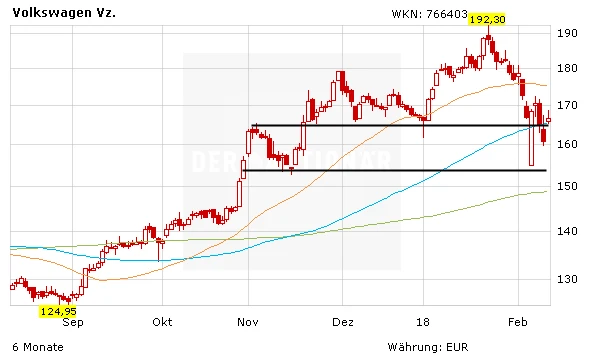 Fundamental stimmt die Richtung bei VW. Der Autobauer hat zuletzt deutliche Zuwächse in den USA erzielt, der Start ins Jahr 2018 ist geglückt. China zeigt keine Schwäche und bleibt nach wie vor für VW der Wachstumsmarkt schlechthin.