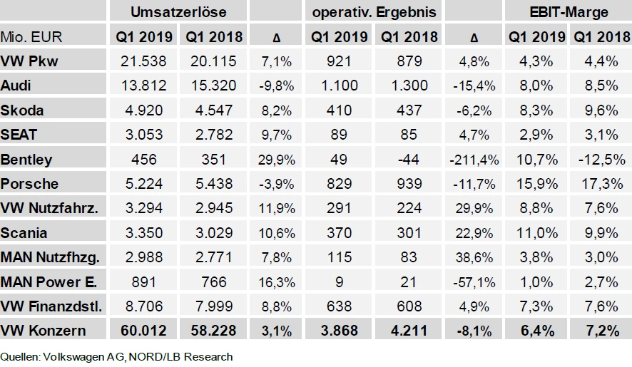 Besonders positiv ist die Tatsache, dass VW mit seiner Kernmarke gut ins Jahr gestartet ist: VW-Pkw erzielte ein Umsatzplus von 7,1 Prozent auf 21,5 Milliarden Euro. Das EBIT verbesserte sich für VW-Pkw von 879 Millionen Euro auf 921 Millionen Euro.