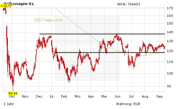 In den USA hat VW einen langen Weg vor sich. Der Autobauer ist dort mit einem Marktanteil von rund drei Prozent allerdings ohnehin nur ein Nischenanbieter. Insgesamt ist der Konzern aber auf dem richtigen Weg. DER AKTIONÄR bleibt optimistisch für die Aktie. Mutige Anleger können Rücksetzer zum Kauf nutzen. Wer dabei ist, bleibt an Bord. Gelingt der erneute Sprung über die 125-Euro-Marke, liegt das nächste Ziel bei 138 Euro.