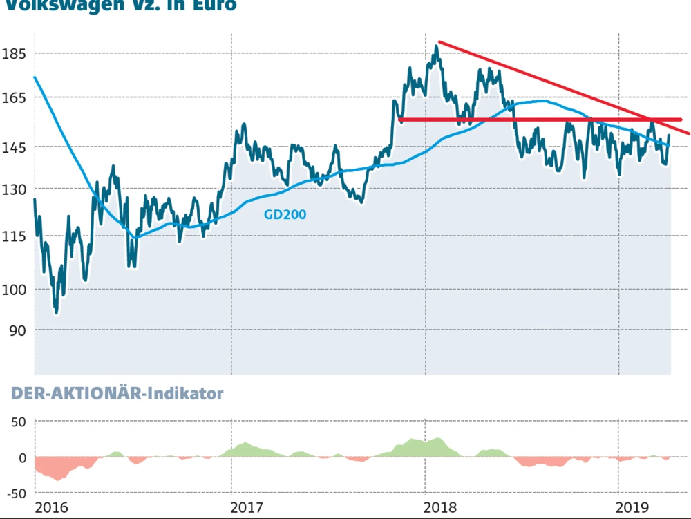 Um neues Kurspotential freizusetzen, muss die VW-Aktie den Abwärtstrendkanal knacken. Dieser verläuft aktuell bei 153,80 Euro. Voraussetzung dafür ist allerdings ein freundlicher Gesamtmarkt. Im Anschluss wäre das nächste Etappenziel die obere Begrenzung des Seitwärtstrends bei 154,50 Euro. Grundsätzlich sehen mittlerweile auch einige Analysten die VW-Aktie wieder positiv. Frank Schwope etwa von der NordLB geht davon aus, dass das Geschäft für VW zwar rauer werden wird. Dennoch: in Erwartung deutlicher Erfolge beim Konzernumbau hält der Experte Kurse um 170,00 Euro für möglich.