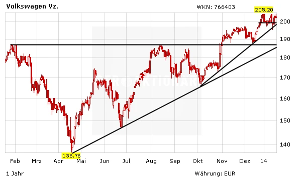 Dass ein solch umfassender Verbund wie der von MAN, Scania und VW Nutzfahrzeuge einige Zeit braucht, um in alle Bereichen zu funktionieren, verwundert nicht. Letztlich dürfte Volkswagen nicht nur kurzfristig von der Zusammenarbeit der drei Nutzfahrzeughersteller profitieren. Die Aktie bleibt derweil aussichtsreich, zumal die Marke von 200 Euro schnell zurückerobert wurde, und damit das Chartbild aussichtsreich bleibt.