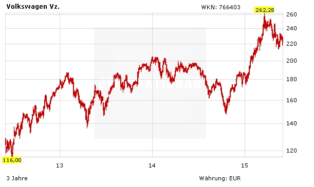 DER AKTIONÄR bleibt für die Aktie von Volkswagen weiterhin zuversichtlich gestimmt und rät zum Kauf. Das Kursziel liegt unverändert bei 275,00 Euro. Der Stoppkurs sollte bei 205,00 Euro belassen werden.