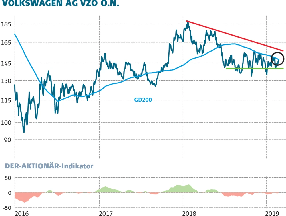 Die Aktie reagiert kaum auf die Zahlen. Es bleibt dabei: Volkswagen muss die wichtige 200-Tage-Line bei 148,20 Euro überwinden.