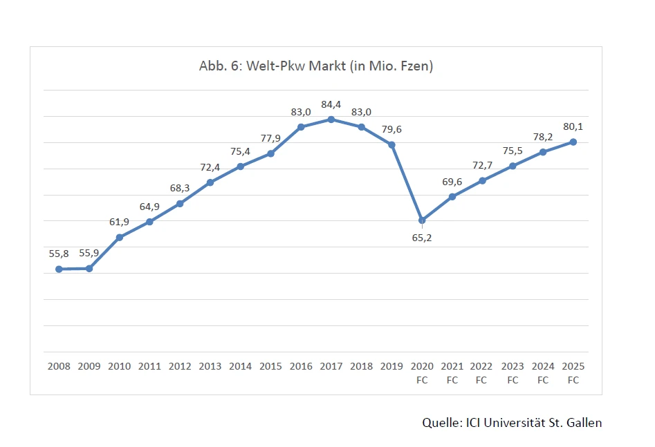 Und ergänzt: „ Weltweit wird man es schaffen durch die zu erwartende Erholungsgeschwindigkeit in China wieder im Jahr 2025 die Verkaufs-Niveaus im Welt-Pkw-Geschäft bis zum Jahr 2025 zu erreichen.