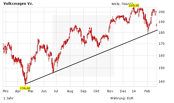 Deutlich optimistischer zeigt sich die Investmentbank Equinet. Die Experten bestätigten das „Buy“-Rating mit einem Kursziel von 250 Euro für Volkswagen. Die Jahreszahlen haben die Erwartungen von Analyst Tim Schuldt getroffen. Schuldt ist zudem der Meinung, dass die vollständige Übernahme des Nutzfahrzeugherstellers Scania trotz der hohen Prämie des Angebots die richtige Entscheidung war.