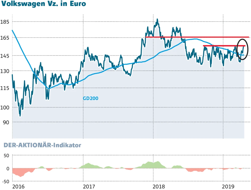 Volkswagen setzt auf eine Erholung seines wichtigsten Absatzmarktes China. Zur Erinnerung: im Jahr 2018 ist der Verkauf an neuen Autos das erste Mal seit 20 Jahren zurück gegangen. Für Volkswagen ist China enorm wichtig. Schon jetzt verkauft der VW-Konzern jedes zweite Auto in China. Die Aktie muss jetzt eine wichtige Hürde nehmen, um weiteres Kurspotenzial frei zu setzen.