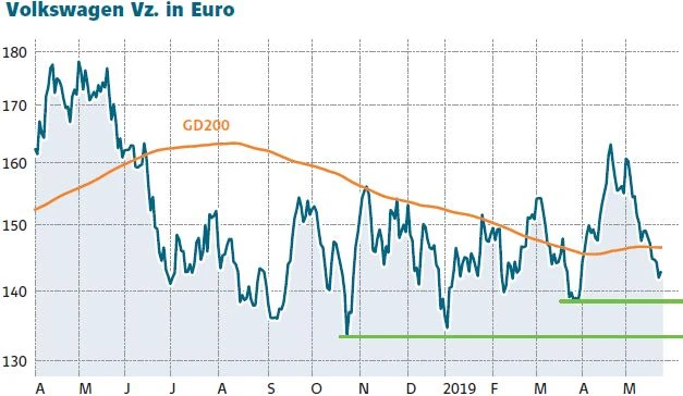 Die Aktie von VW ist zuletzt weiter unter Druck geraten und dabei auch unter die 200-Tage-Linie gerutscht. Die nächste starke Unterstützungszone liegt zwischen 138,10 Euro und 139,50 Euro. Ansonsten droht das Papier bis auf 133,50 Euro abzurutschen. Anleger können versuchen mit einem Abstauberlimit bei 133,90 Euro ein paar Stücke zu kaufen.
