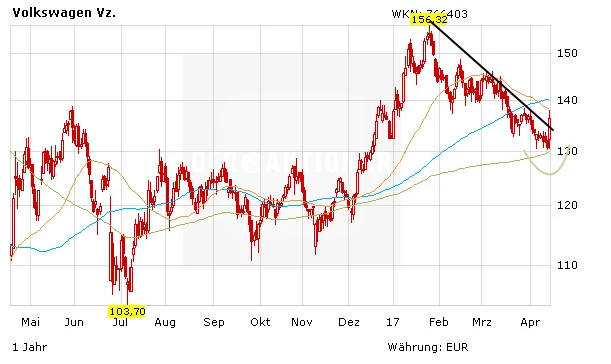 Ein gutes Nervenkostüm war in den letzten Wochen die Voraussetzung für alle VW-Aktionäre. Die Aktie dümpelte vor sich hin, gab sogar ihre hart erarbeiteten Gewinne wieder ab und fiel von 140 Euro bis auf 130 Euro. Zum richtigen Zeitpunkt gab VW seine vorläufigen Zahlen für das erste Quartal bekannt. Mit einem Gewinn von 4,4 Milliarden Euro lag der Konzern weit über den Markterwartungen. Es gab aber noch mehr an guten Nachrichten.