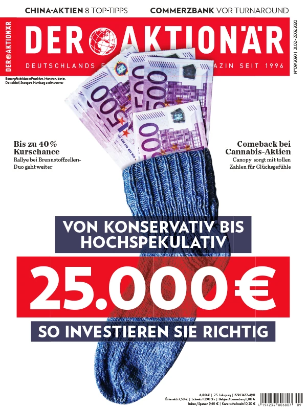 Wie legen Sie 25.000 Euro profitabel an? Olaf Scholz würde Ihnen wahrscheinlich ein Sparbuch empfehlen, DER AKTIONÄR als Partner der Privatanleger bietet bessere Möglichkeiten. Im April 2019 hat die Redaktion ihren Lesern in der Ausgabe 18 drei Depots mit einem Startkapital von je 25.000 Euro gestaffelt nach Risikoneigung vorgestellt. Der aktuelle Stand: