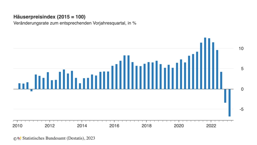 Der Himmel am Immobilienmarkt zieht sich immer weiter zu. Passend zu den Unwettern in Deutschland, veröffentlicht das Statistische Bundesamt (Destatis) beunruhigende Zahlen. Demnach sind die Preise für Wohnimmobilien (Häuserpreisindex) in Deutschland im 1. Quartal 2023 um durchschnittlich 6,8 Prozent gegenüber dem Vorjahresquartal gesunken. Weiter heißt es: Dies war "der stärkste Rückgang der Wohnimmobilienpreise gegenüber einem Vorjahresquartal seit Beginn der Zeitreihe im Jahr 2000". Im Vergleich zum letzten Quartal 2022 beträgt der Rückgang durchschnittlich 3,1 Prozent.