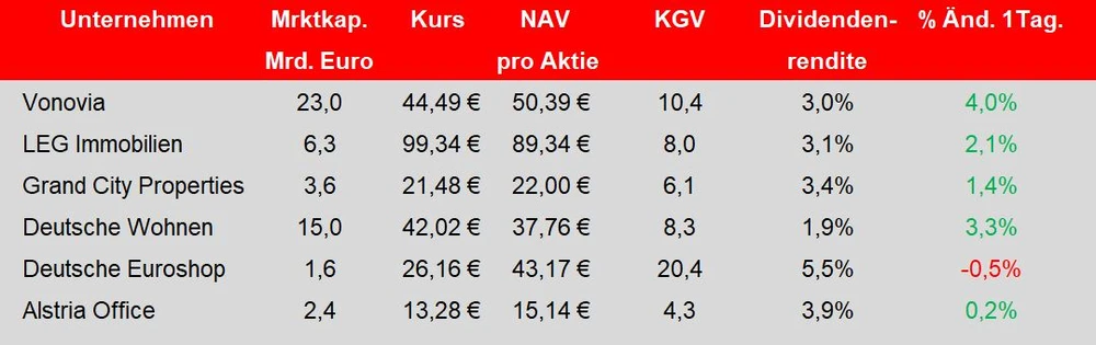 Immobilienwerte sind heute im schwachen Marktumfeld gefragt - zum einen wegen ihrer defensiven Eigenschaften und zum anderen, weil die von Vonovia vorgelegten Zahlen auf positives Feedback stießen.