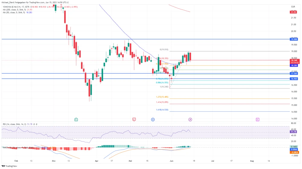 Grundsätzlich ist wichtig, dass Vonovia zunächst das Juni-Hoch bei 19,01 Euro und anschließend das April-Hoch bei 19,90 Euro überwindet. Schafft die Aktie den Sprung über diese Hürden, ist die Trendwende bestätigt und das nächste Ziel der GD200 bei 21,93 Euro. Erst, wenn der Kurs unter das Mai-Tief bei 16,24 Euro fällt, ist das bullishe Szenario obsolet.